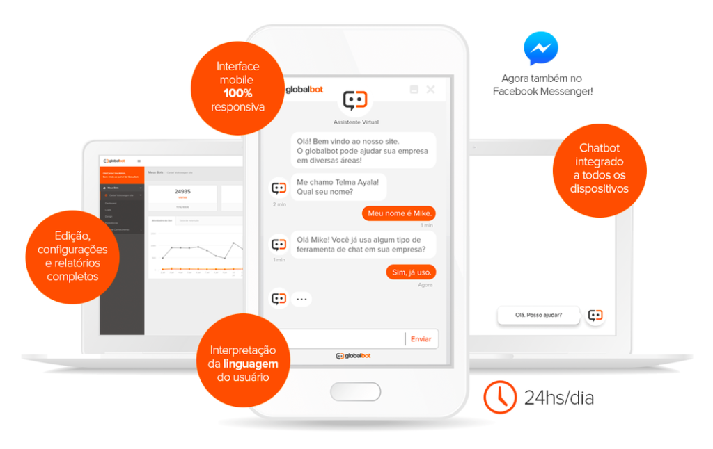 Atendimento automático a clientes, 24h e sem atendentes.